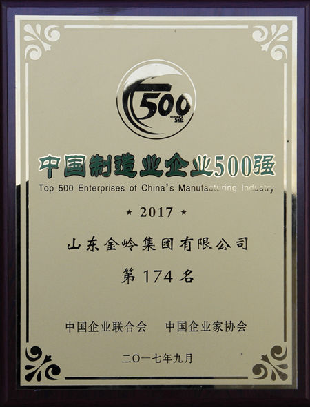 9月10日,由中國(guó)企業(yè)聯(lián)合會(huì)、中國(guó)企業(yè)家協(xié)會(huì)主辦的2017中國(guó)500強(qiáng)企業(yè)高峰論壇在南昌舉行。論壇發(fā)布了2017中國(guó)企業(yè)500強(qiáng)等榜單,金嶺集團(tuán)入圍2017中國(guó)企業(yè)500強(qiáng),位列386位,入圍中國(guó)制造業(yè)企業(yè)500強(qiáng),位列174位。