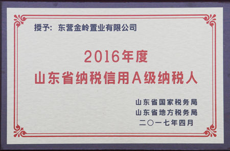 近日,2016年度山東省納稅信用級別評價結(jié)果發(fā)布,集團公司下屬子公司金嶺股份、金嶺化學、金嶺置業(yè)、金嶺新材料、濱海熱力獲得表彰。