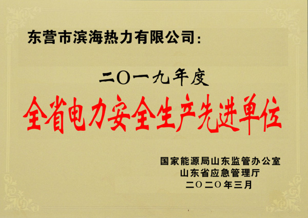 2020年3月2日,國家能源局山東監(jiān)管辦公室、山東省應急管理廳下發(fā)文件,授予東營市濱海熱力有限公司“2019年度全省電力安全生產(chǎn)先進單位”榮譽稱號,以表彰公司在全省電力安全生產(chǎn)工作中做出的突出成績。2019年,濱海熱力公司深入開展電力安全生產(chǎn)專項整治行動、電力行業(yè)“安全生產(chǎn)月”活動,圓滿完成新中國成立 70周年系列慶?;顒与娏Π踩U先蝿眨瑸楸3秩‰娏Π踩a(chǎn)穩(wěn)定運行做出了突出貢獻。