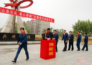 四川地震災(zāi)情牽動著每一個金嶺人的心,災(zāi)情發(fā)生后公司向全體員工發(fā)出了“一方有難,八方支援”向災(zāi)區(qū)捐款的倡議,并于5月18日在辦公樓前舉行了“心系災(zāi)區(qū)、愛心奉獻”抗震救災(zāi)捐款儀式,大家紛紛伸出援助之手,僅一天時間就捐款50萬元,其中董事長趙曰嶺捐款25萬元,向災(zāi)區(qū)人民奉獻上金嶺人的一片愛心。