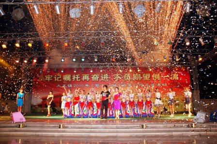 7月22日晚,公司在大王鎮(zhèn)文化廣場(chǎng)舉行了“金嶺專(zhuān)場(chǎng)”消夏文藝演出,為鎮(zhèn)區(qū)人民獻(xiàn)上了一道豐富的文化盛宴。晚會(huì)現(xiàn)場(chǎng)歌聲悠揚(yáng)、舞姿翩躚,精彩的文藝節(jié)目令前來(lái)消夏的人們目不暇接。主持人活潑的主持風(fēng)格和演員們時(shí)尚動(dòng)感的演出使現(xiàn)場(chǎng)觀眾喝彩聲、掌聲不斷。晚會(huì)在帶給觀眾愉悅、舒暢心情的同時(shí),借機(jī)對(duì)公司進(jìn)行了大力宣傳。