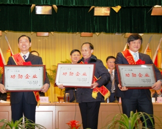 2月10日,全縣經(jīng)濟(jì)工作暨2010年度目標(biāo)獎(jiǎng)懲兌現(xiàn)會(huì)議隆重召開,我公司被縣委、縣政府授予廣饒縣“功勛企業(yè)”和“安全生產(chǎn)工作先進(jìn)單位”,以表彰我公司在促進(jìn)經(jīng)濟(jì)發(fā)展和加強(qiáng)安全生產(chǎn)管理中所做出的突出成績,公司董事長趙曰嶺和生產(chǎn)管理部經(jīng)理張?jiān)瓍⒓恿祟C獎(jiǎng)儀式。